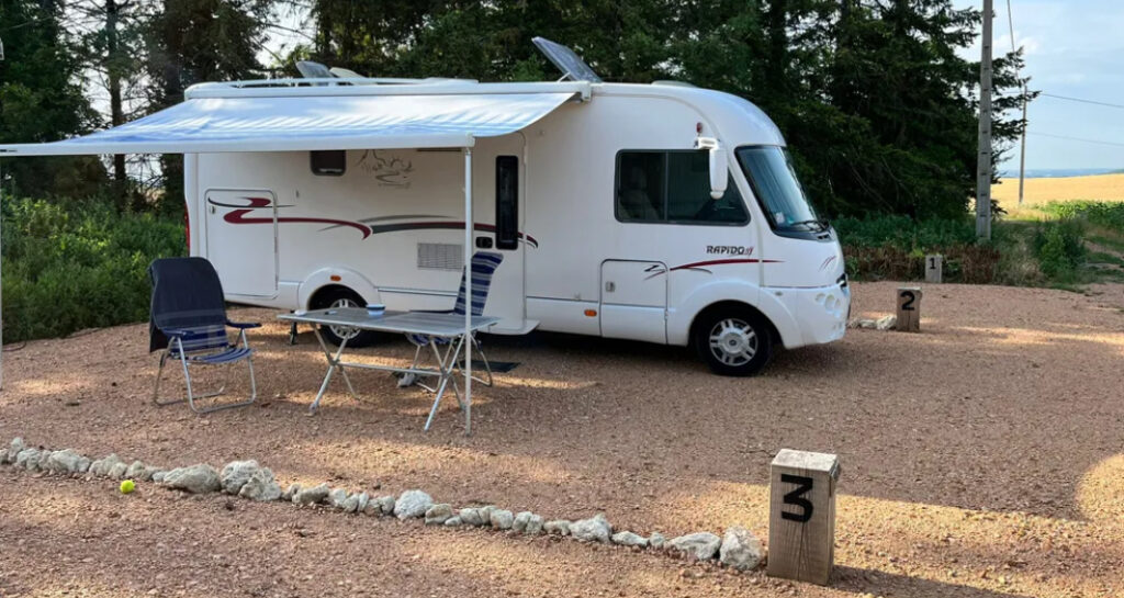 Nous disposons de 4 emplacements stabilisés en gravier et équipés d’un branchement eau et électricité (16 ampères) pour votre camping-car.